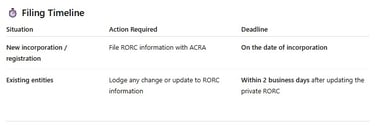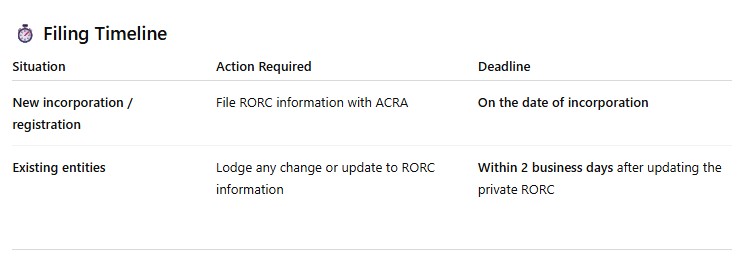 From June 2025, in addition to maintaining this private register, entities must also lodge their RORC information electronically with ACRA.
