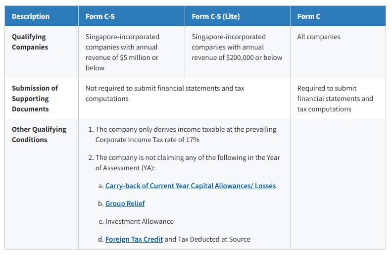Form C-S/ Form C-S (Lite)/ Form C is a Corporate Income Tax Return for your company to declare its actual income. An overview of the types of Corporate Income Tax Return is as follows: